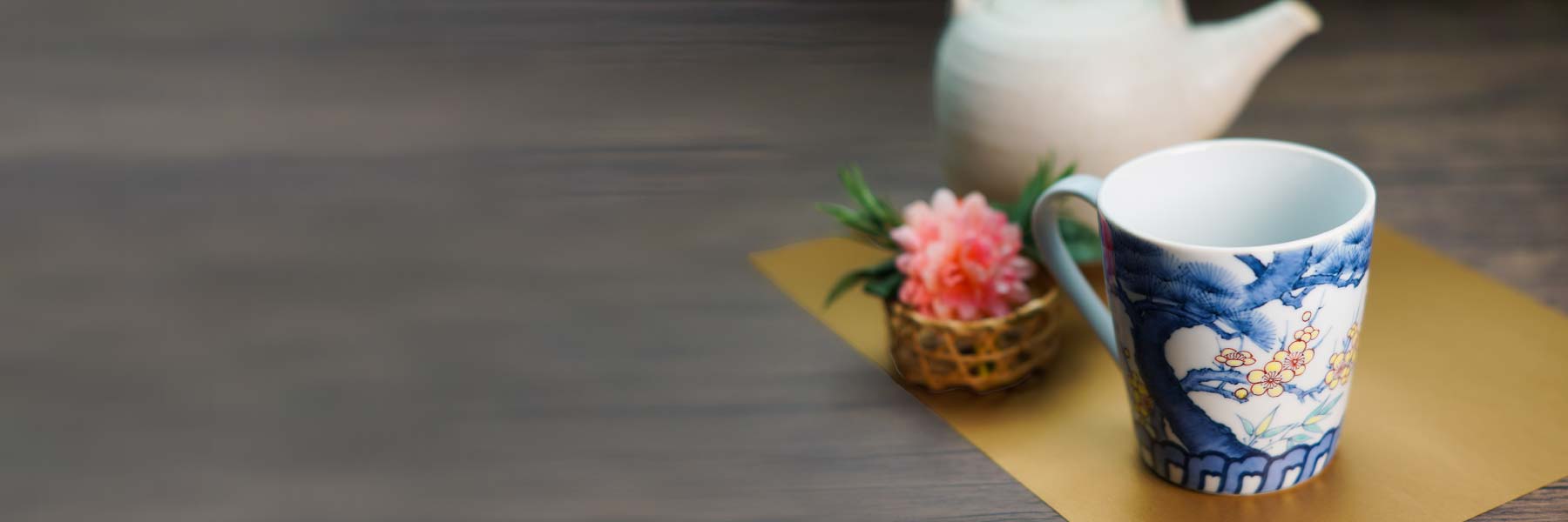 仲睦まじい花鳥が描かれたペアマグカップです。余白の美を活かした柿右衛門様式によって表現されております。一品一品に愛情を注ぎ手描きで描かれた極細の絵柄、全て異なる絵柄であることから一つの美術品としての価値と風格を持ちます。