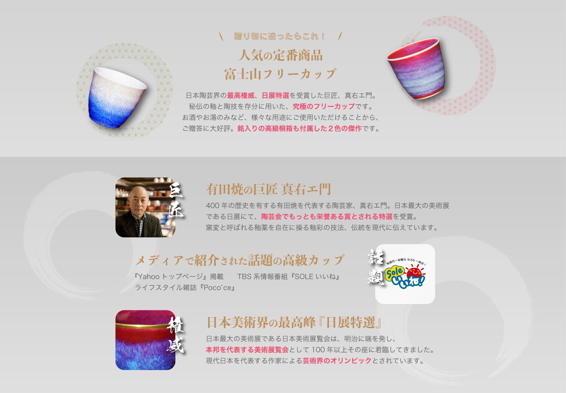 吉祥の象徴である富士山をイメージして作陶された名匠による至極のカップです。