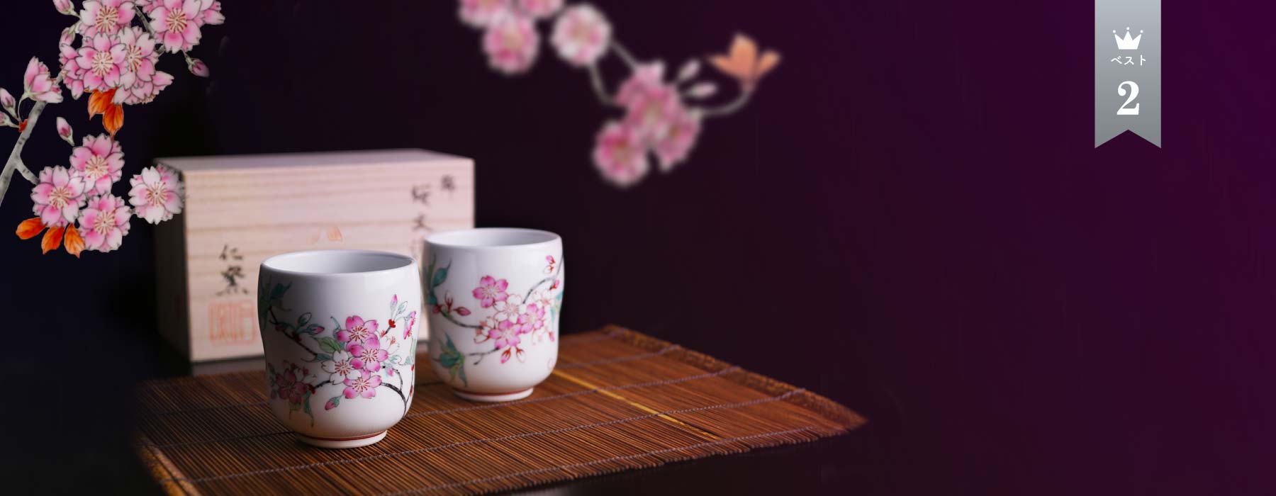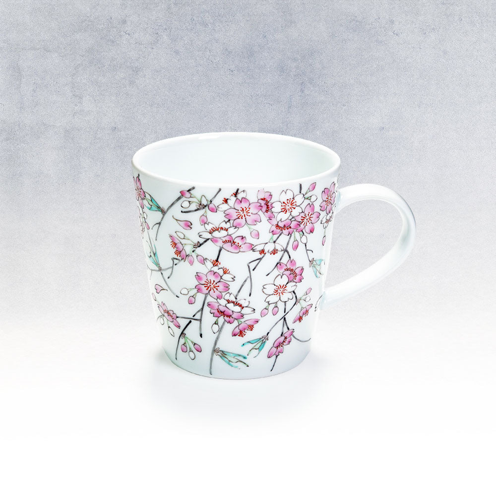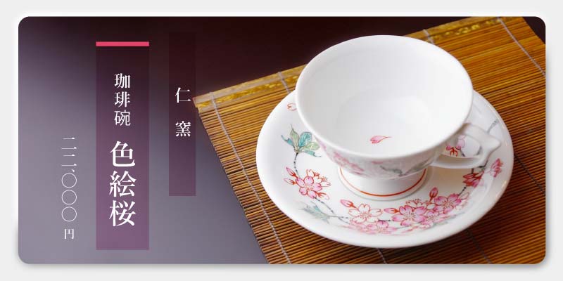 上皇皇后両陛下への御献上の誉れを預かった当店人気の高級夫婦湯呑です。乳白色の磁器肌に色鮮やかな桜が咲き誇る余白の美をご堪能いただけるペア湯呑です。