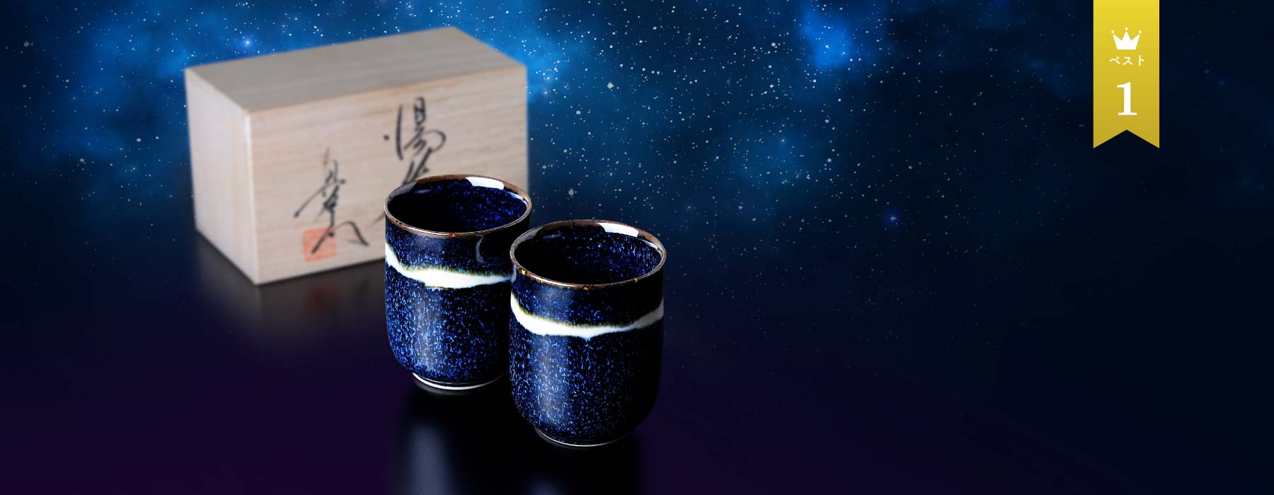 真右エ門窯によるJTOPIA特別限定の作品です。耀変油滴天目を発展させる上で生まれた独自技法で銀河の星々と天の川をイメージさせるロマン溢れる逸品です。