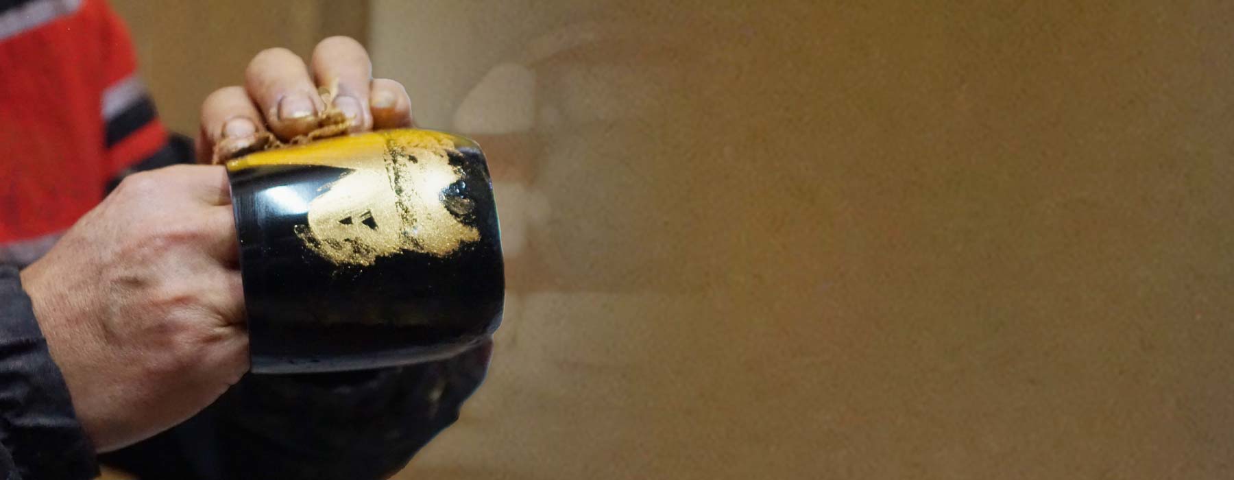 日本文化の優雅さを演出する「箔衣」。現代的な装いながらも、伝統技法を尊重したものづくりに趣を感じます。箔衣は、時を超えて受け継がれて来た山中独自の2つの技法「切り回し」と「拭き漆」の合わせ技により誕生しました。幾重にもかさねた金沢箔の美しさが極限まで引き出され、日本の技術の誇りが奥深い魅力と高級感として漂って参ります。
