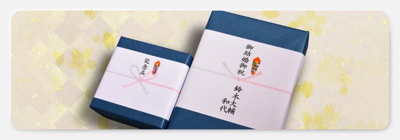 有田焼の染付技法を思わせる、上品なロイヤルブルーの包装紙にてラッピングを行います。メッセージカードも無料で代筆致します。
