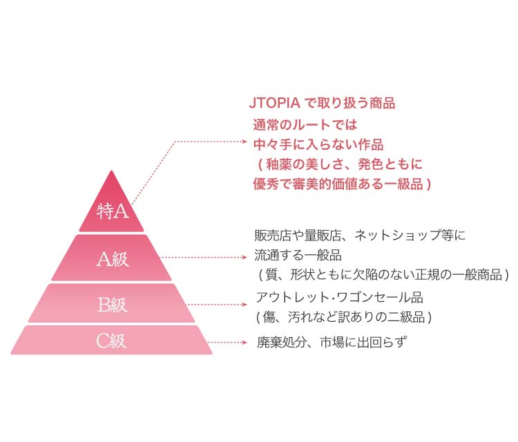 一流の作家・窯元が作り上げた作品の中より、釉薬の美しさや発色が極めて美しい作品を店主と窯元らが目利きした極上品のことでございます。作家の個展や美術画廊へと出回り審美的価値がございます。